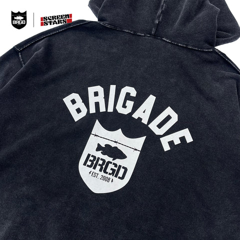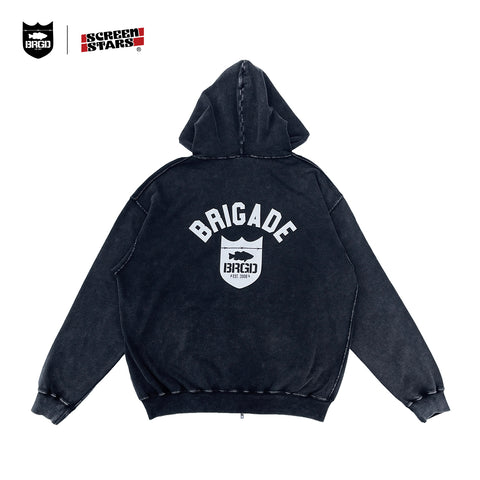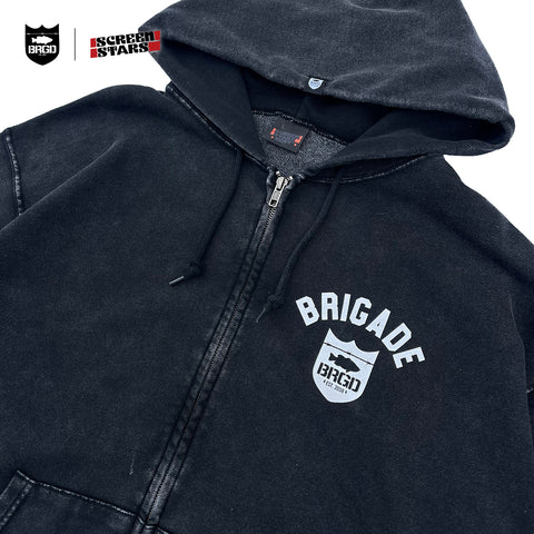SCREEN STARS × BASS BRIGADE CHEMICAL WASH ZIP HOODIE - BLACK