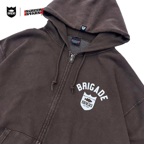 SCREEN STARS × BASS BRIGADE CHEMICAL WASH ZIP HOODIE - BROWN