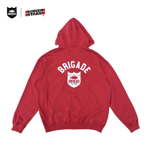 SCREEN STARS × BASS BRIGADE CHEMICAL WASH ZIP HOODIE - RED
