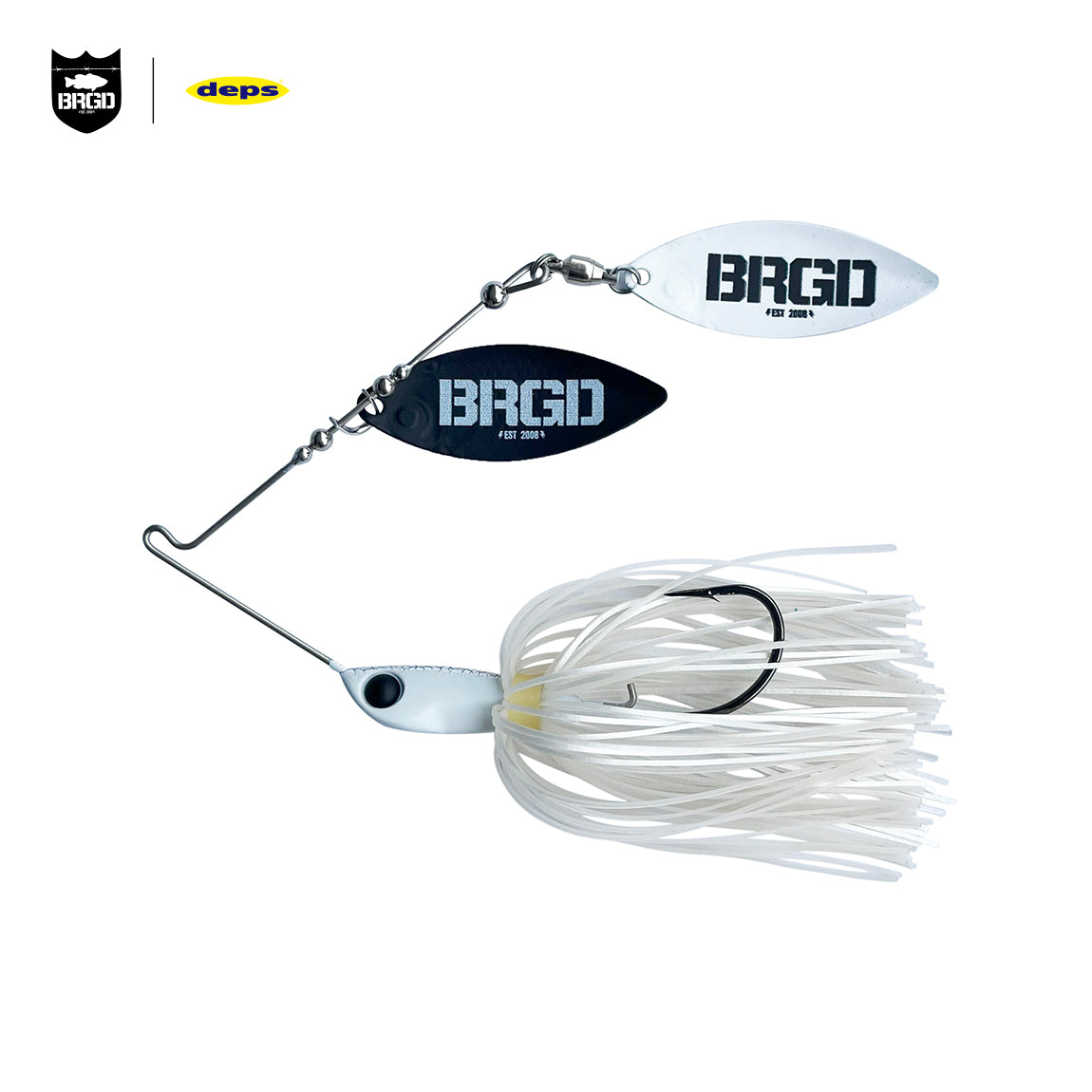 The head comes in matte white with crack-pattern detailing. The spinner blades feature a matte black finish on the front and matte white on the rear, both imprinted with the BRGD logo. A white carp skirt ties it all together, delivering the unmistakable BASS BRIGADE look.