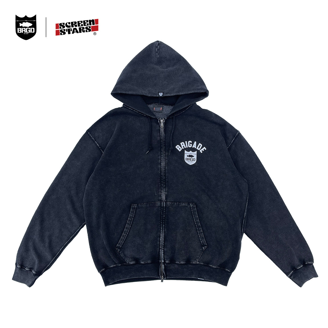 SCREEN STARS × BASS BRIGADE CHEMICAL WASH ZIP HOODIE - BLACK